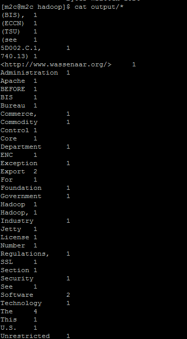 bin/hadoop jar share/hadoop/mapreduce/sources/hadoop-mapreduce-examples-2.6.4-sources.jar org.apache.hadoop.examples.WordCount input output